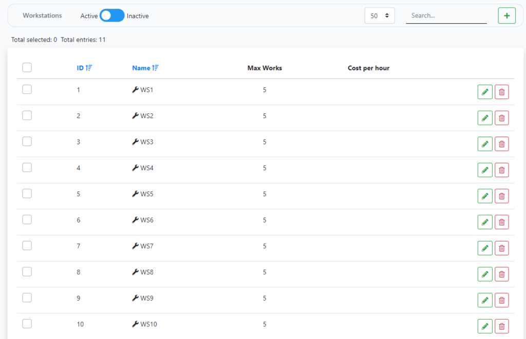 Πατώντας το κουμπί μέσα στο Σταθμό εργασίας, μπορείτε να επαναφέρετε τον σταθμό και να τον χρησιμοποιήσετε στην παραγωγή και αντίστοιχα όταν επιλέξετε  το  Inactive μέσα στο σταθμό εργασίας, τότε απενεργοποιείται.