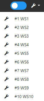 Οι Σταθμοί εργασίας βρίσκονται  υπό μορφή λίστας στην κεντρική μπάρα. Επιλέγετε όπου εμφανίζονται όλοι οι Σταθμοί εργασίας που έχετε δημιουργήσει. Επιλέγοντας ένα  συγκεκριμένο Σταθμό εργασίας, σας εμφανίζει για τον συγκεκριμένο σταθμό τις γραμμές εντολής παραγωγής.