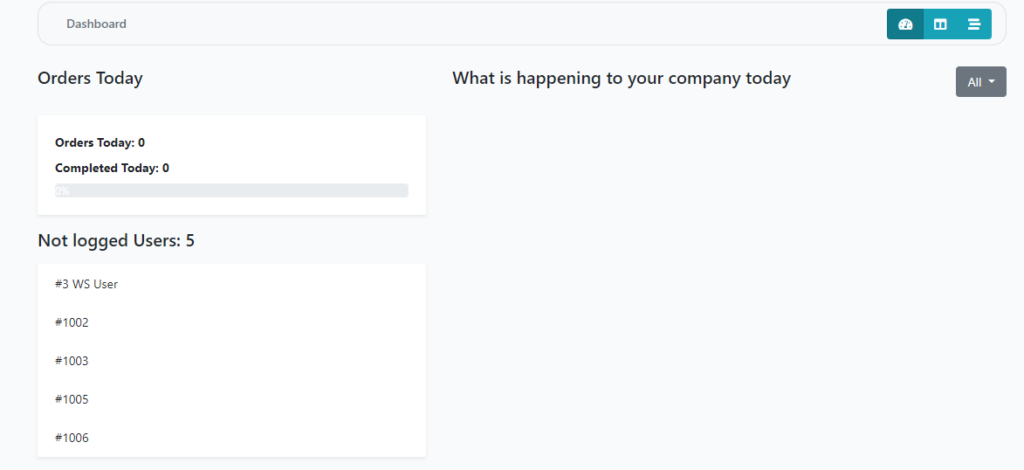εμφανίζει τις σημερινές παραγγελίες, πόσες ολοκληρώθηκαν σήμερα και ποιοί είναι οι μη συνδεδεμένοι χρήστες.