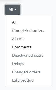 μπορείτε να πραγματοποιήσετε αναζήτηση στις σημερινές παραγγελίες με βάση ολοκληρωμένων παραγγελιών, συναγερμών, σχόλια, ανενεργοί χρήστες, αργοπορίες, αλλαγές παραγγελιών, καθυστερήσεις προϊόντων, όλα τα παραπάνω.
