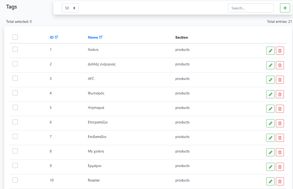 και εμφανίζονται οι ετικέτες που έχετε καταχωρήσει υπό μορφή λίστας. Οι ετικέτες βοηθούν στη καλύτερη ταξινόμηση και αναζήτηση των προϊόντων.
